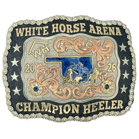 What a better way for someone to display an achievement than a stunning glimmer of a trophy belt buckle. Each custom trophy belt buckles is handmade with lettering to your specifications.